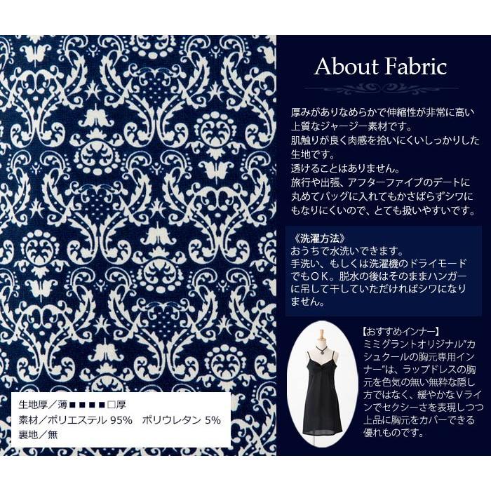 ネイビーアラベスク柄 ラップワンピース ジャージー ワンピース ラップワンピース チュニック レディース 大きいサイズ トールサイズ 着やせ ひざ丈 大人 Opa3 Mimi Grant The Shop 通販 Yahoo ショッピング